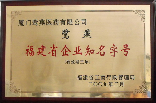 近日, “鷺燕”字號被福建省工商局認定為2008年度福建省企業(yè)知名字號,這是繼“鷺燕”商標及圖被福建省工商局認定為福建省著名商標后的又一榮譽,也是對鷺燕集團多年來堅持依法規(guī)范、誠信經(jīng)營的肯定和鼓勵。