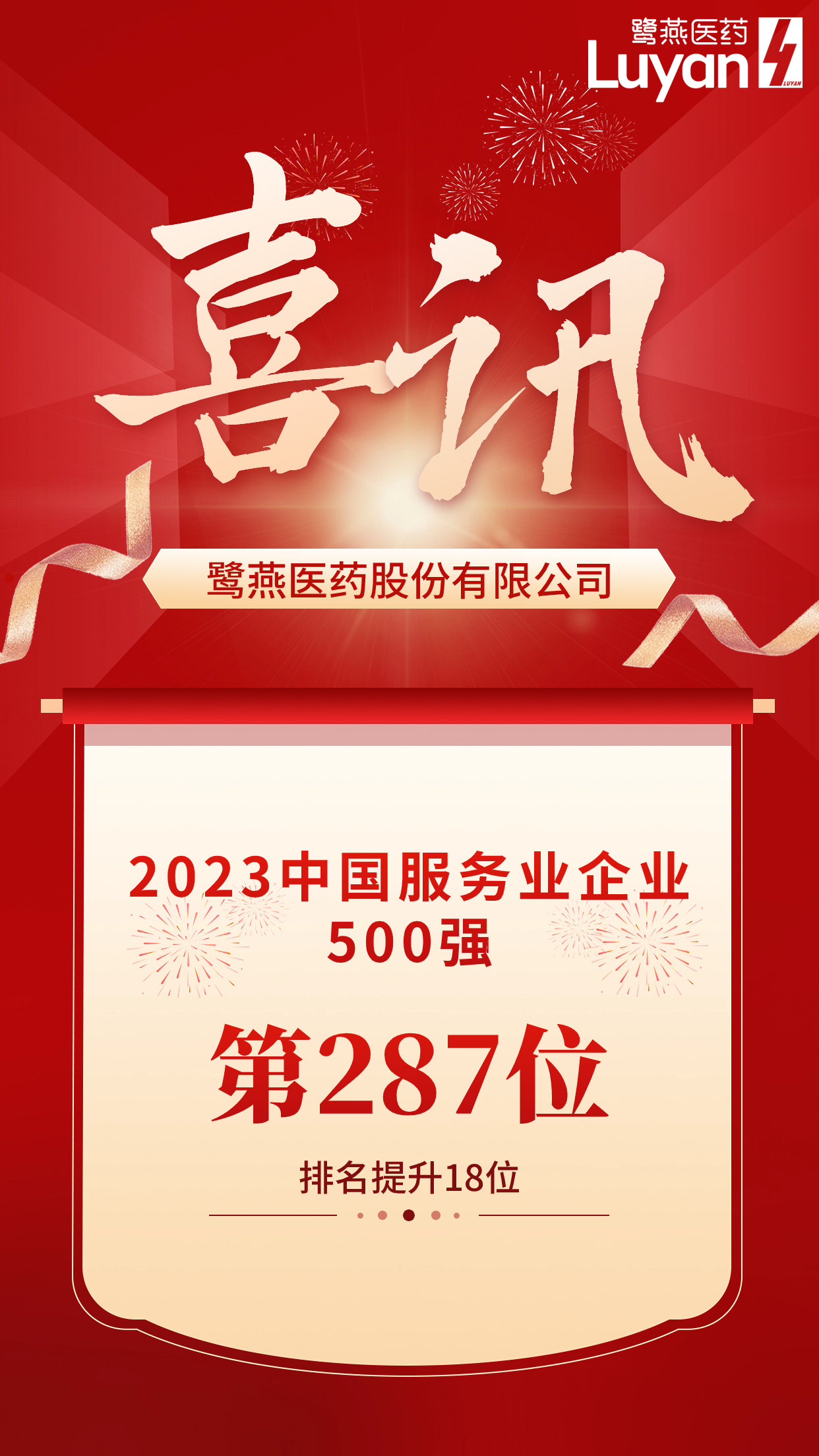 鷺燕醫(yī)藥榮列2023中國服務(wù)業(yè)企業(yè)500強(qiáng)第287位