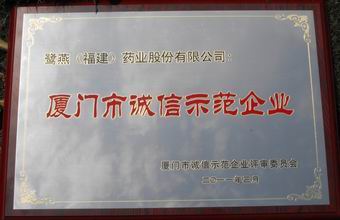 “2008 —2009年度廈門誠信示范企業(yè)”是廈門首個誠信企業(yè)評選活動。本活動由廈門市誠信促進會、廈門市企業(yè)和企業(yè)家聯(lián)合會、各級政府機關等28個相關部門聯(lián)合開展,組委會本著“公開、公正、公平”的原則首次在全市范圍內(nèi)共同開展誠信示范企業(yè)的評選。經(jīng)過一系列激烈的競爭及組委會的嚴格評選,本企業(yè)最終獲得了 “2008—2009年度廈門市誠信示范企業(yè)”的榮譽稱號。